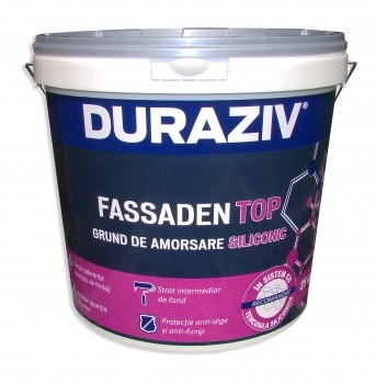 Domeniu de aplicare: Recomandat pentru sistemul de izolare termică DURAZIV pe bază de vată minerală şi polistiren, tencuieli de var şi ciment, beton, plăci de gips carton, vopsitorii de dispersie existente sau plăci de PAL sau OSB.